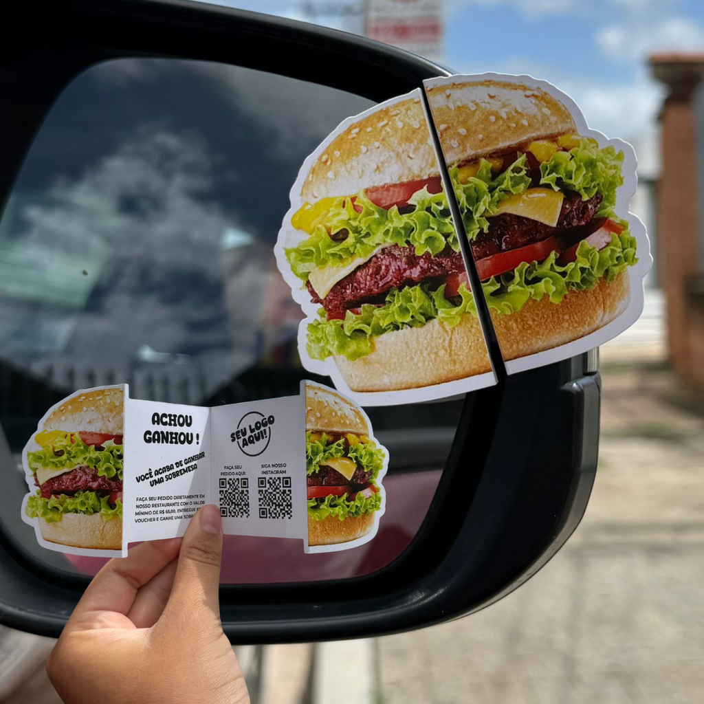 Cartão Hambuúguer Decorativa para Retrovisor ou Porta – Divulgação Criativa Personalizada com seu logo e dados