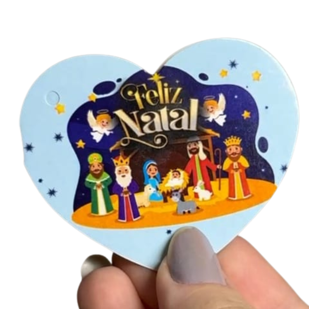 Mini cartão de Coração - Presépio - Azul